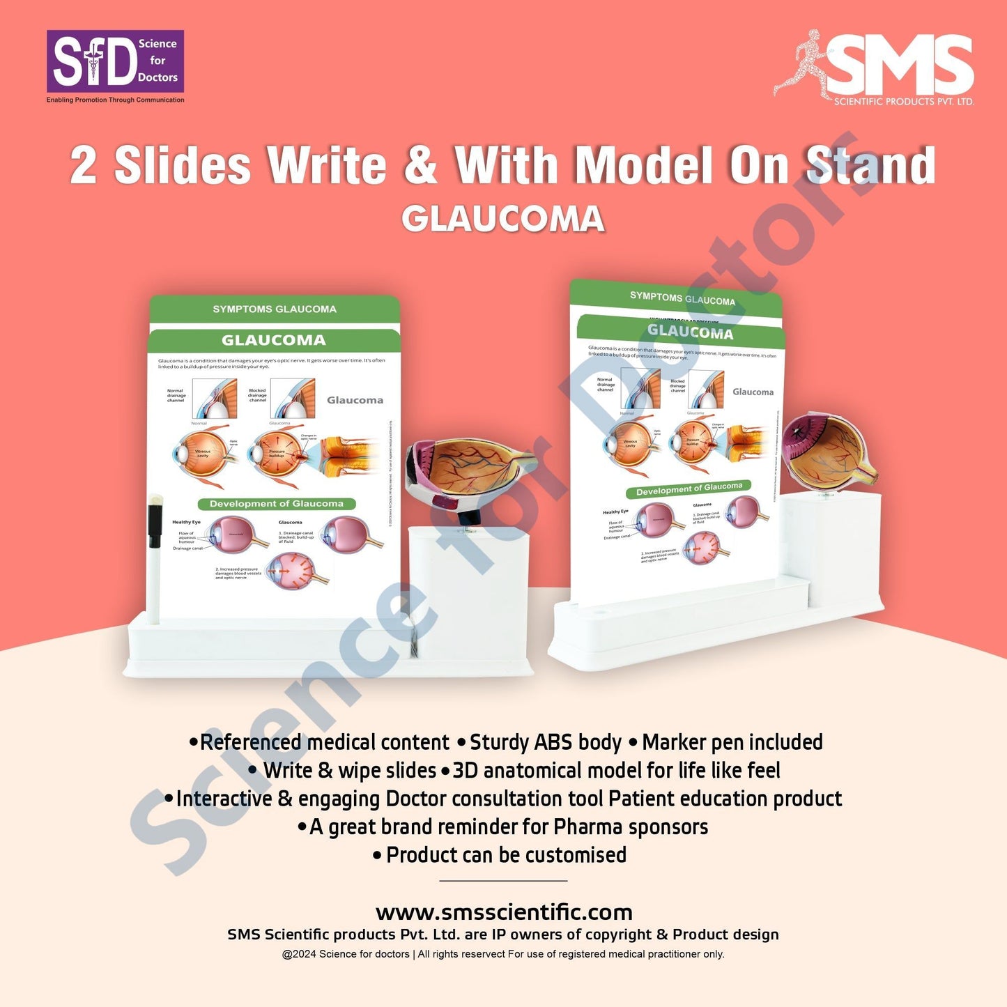 2 Slides Write and Wipe with Model On Stand - Glaucoma