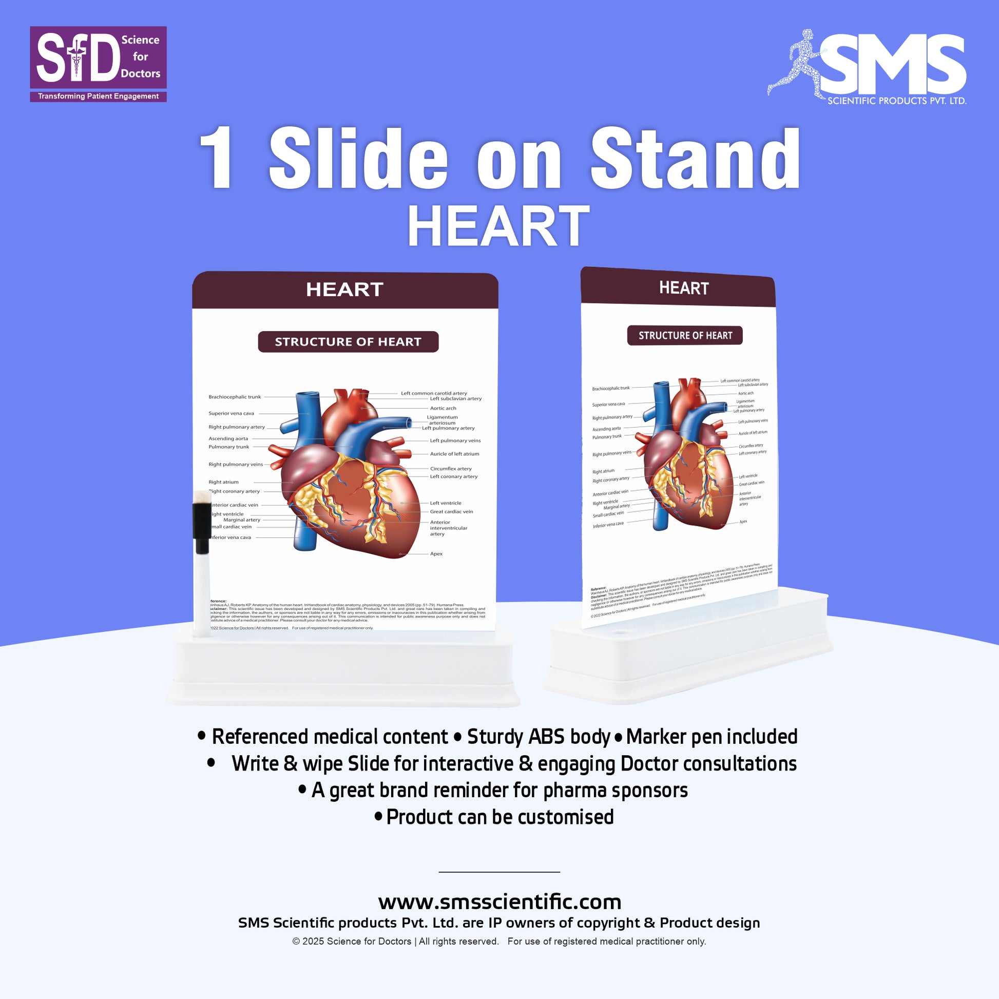 Introducing the 1 Slide on stand, an essential tool designed to enhance doctor-patient interactions and improve patient education. Built with a sturdy ABS body, this slide offers durability and long-term usability. The attached tray provides convenient storage for the included marker pen, making it easy to update the slide during consultations.
