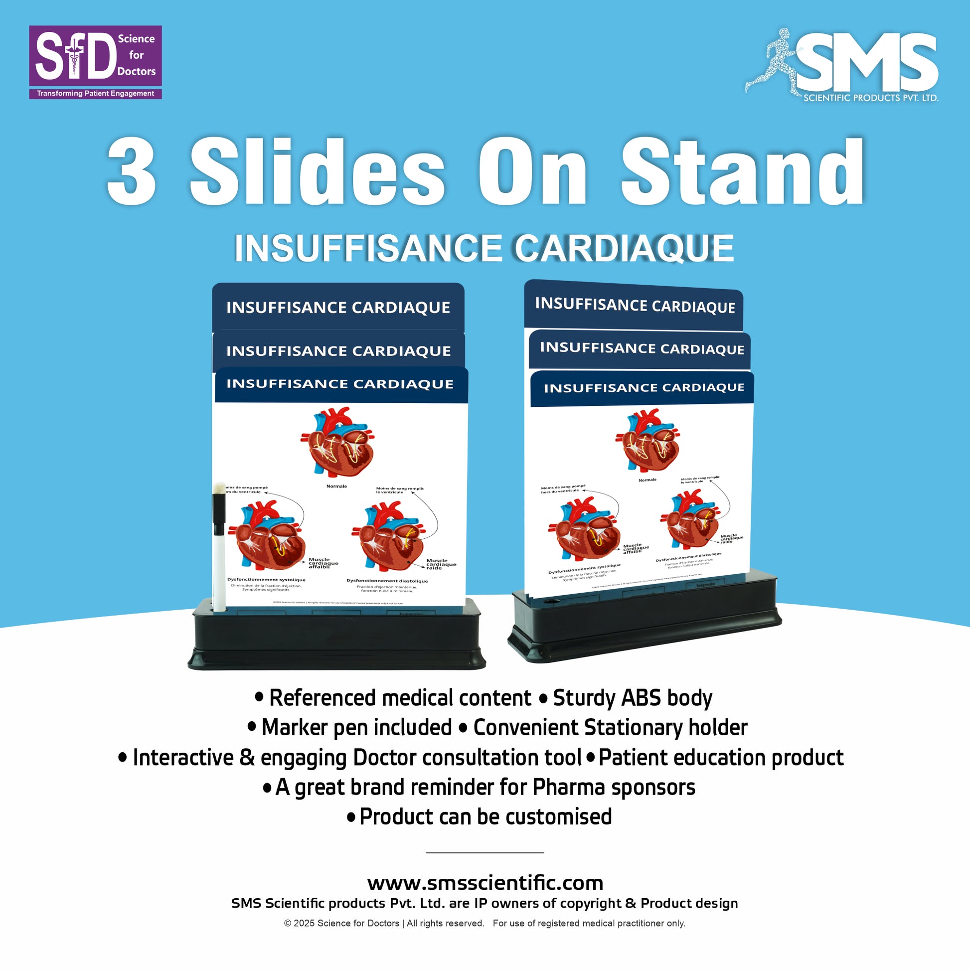 Perfect for use in clinics, hospitals, and educational institutions, the 3 Slide on Stand provides a versatile and engaging solution for both medical professionals and patients. Customize it to enhance every consultation and reinforce your brand’s impact.
