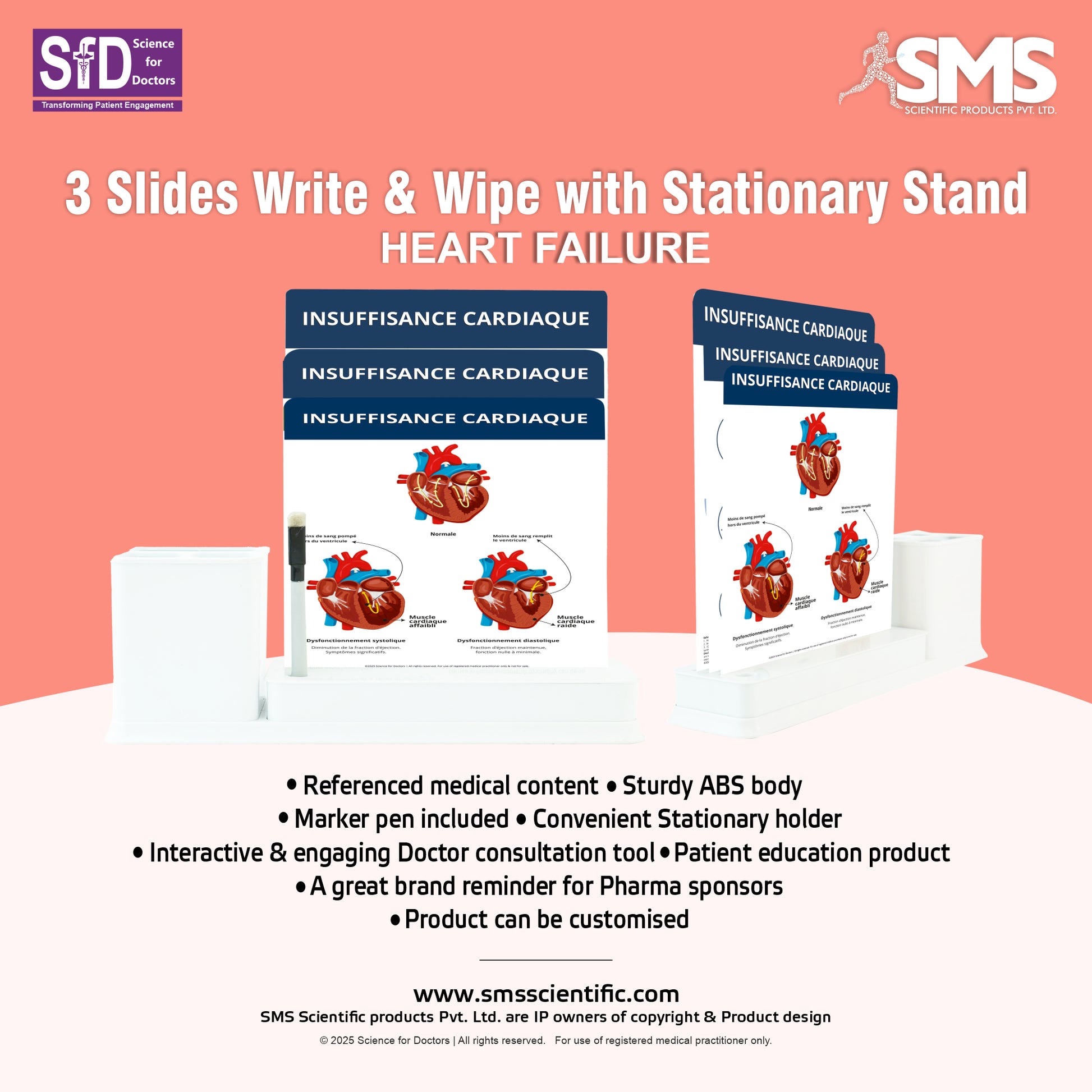 Insuffisance Cardiaque: 3 Slides Write & Wipe with Stationary Stand